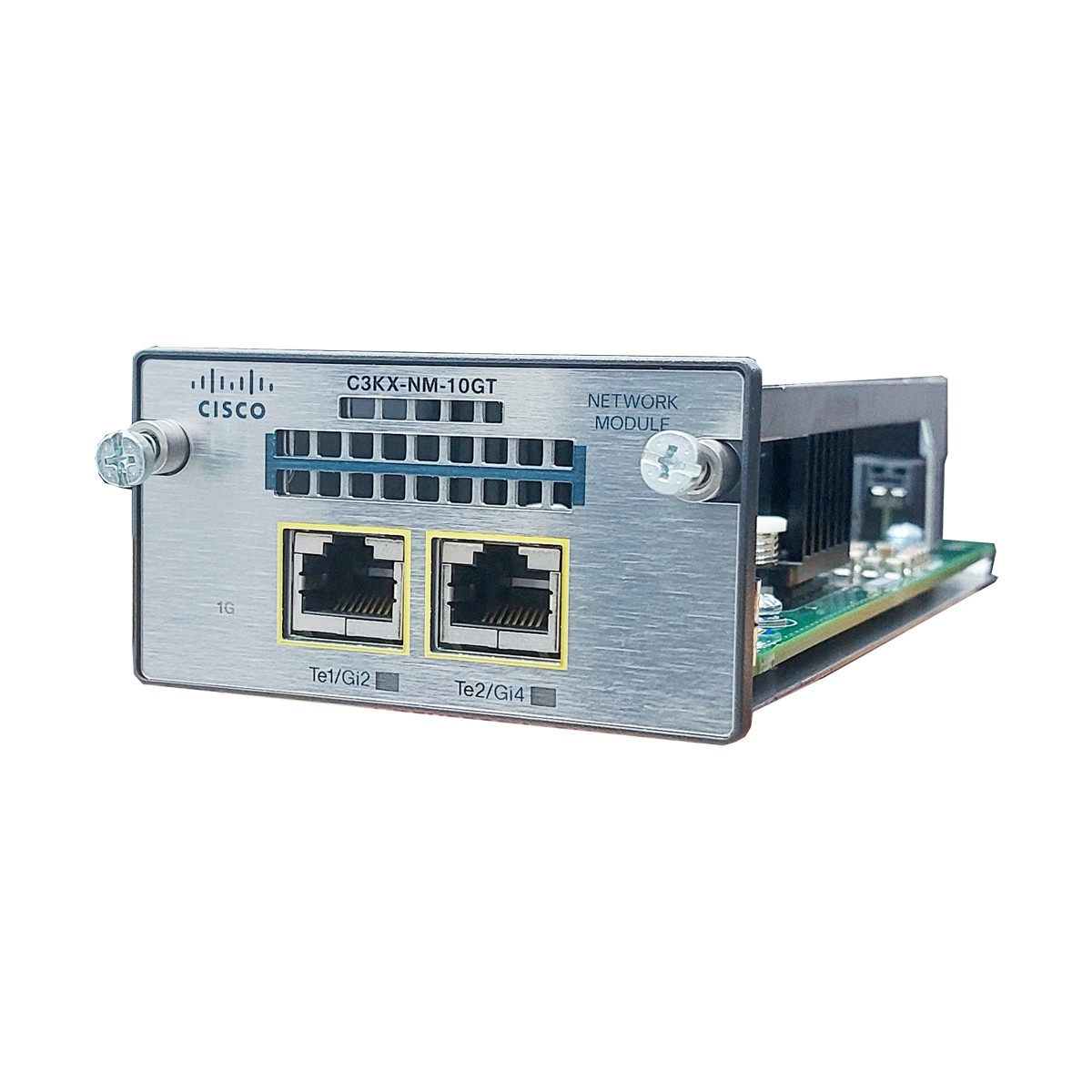 O módulo Cisco C3KX-NM-10GT é um módulo de uplink original Cisco, desenvolvido para os switches Catalyst 3750-X e 3560-X. Este modelo possui 2 portas 10 Gigabit Ethernet em cobre (RJ-45 / 10GBase-T), permitindo conexões de alta velocidade utilizando cabo de rede.